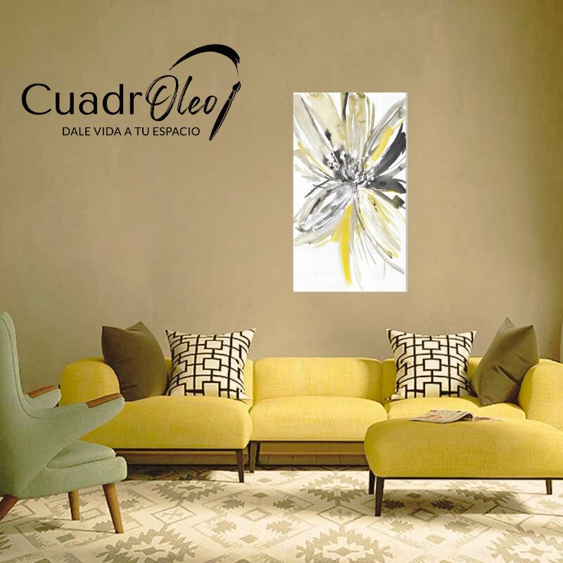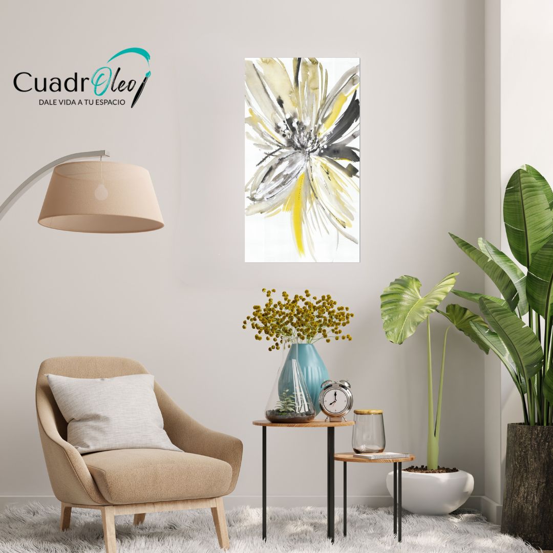 Mi Flor en amarillo y gris, Retocada y Resaltada con Oleo- Montado en bastidor de madera cantidad